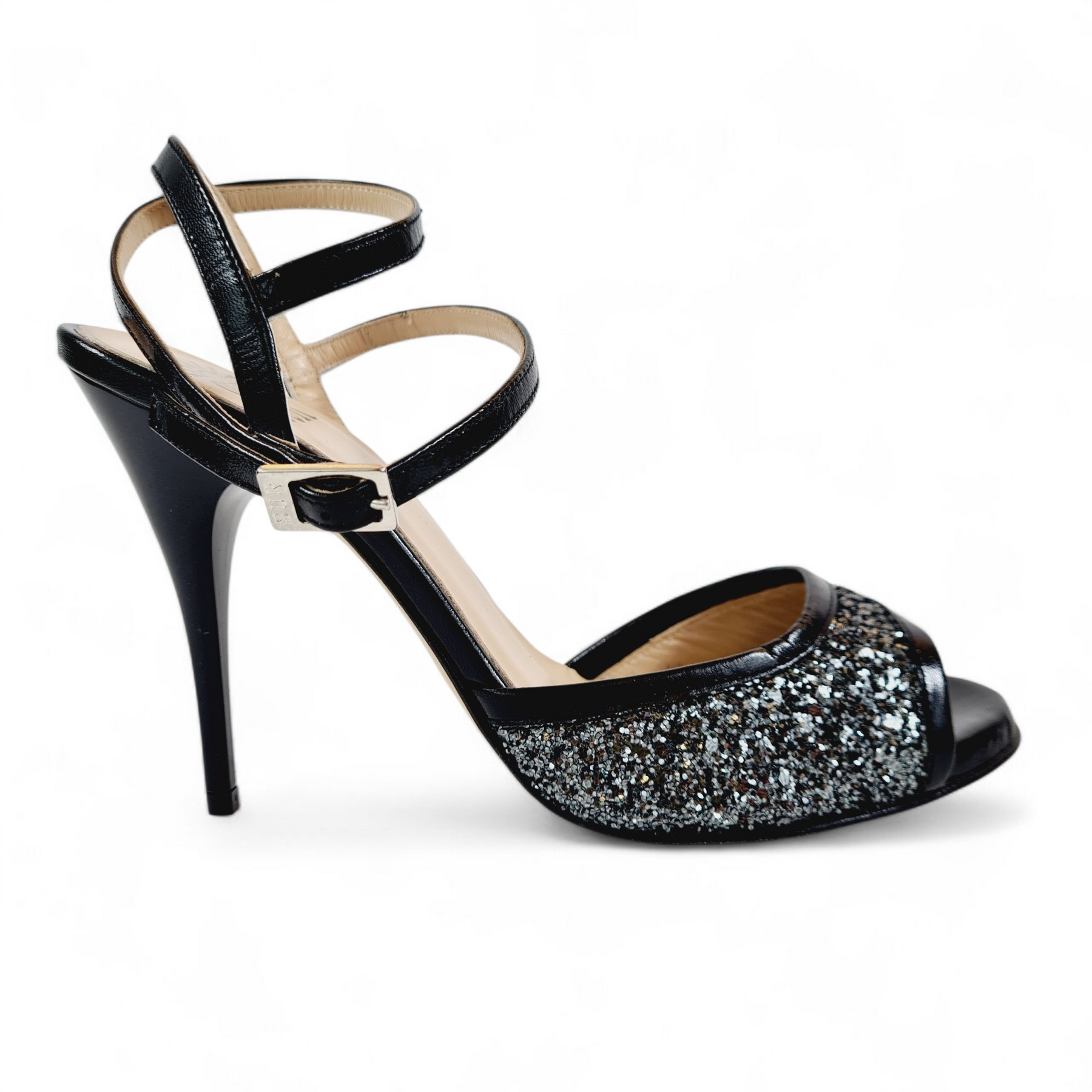 FEMME Glitter Piombo - Nappa Nera tacco 10
