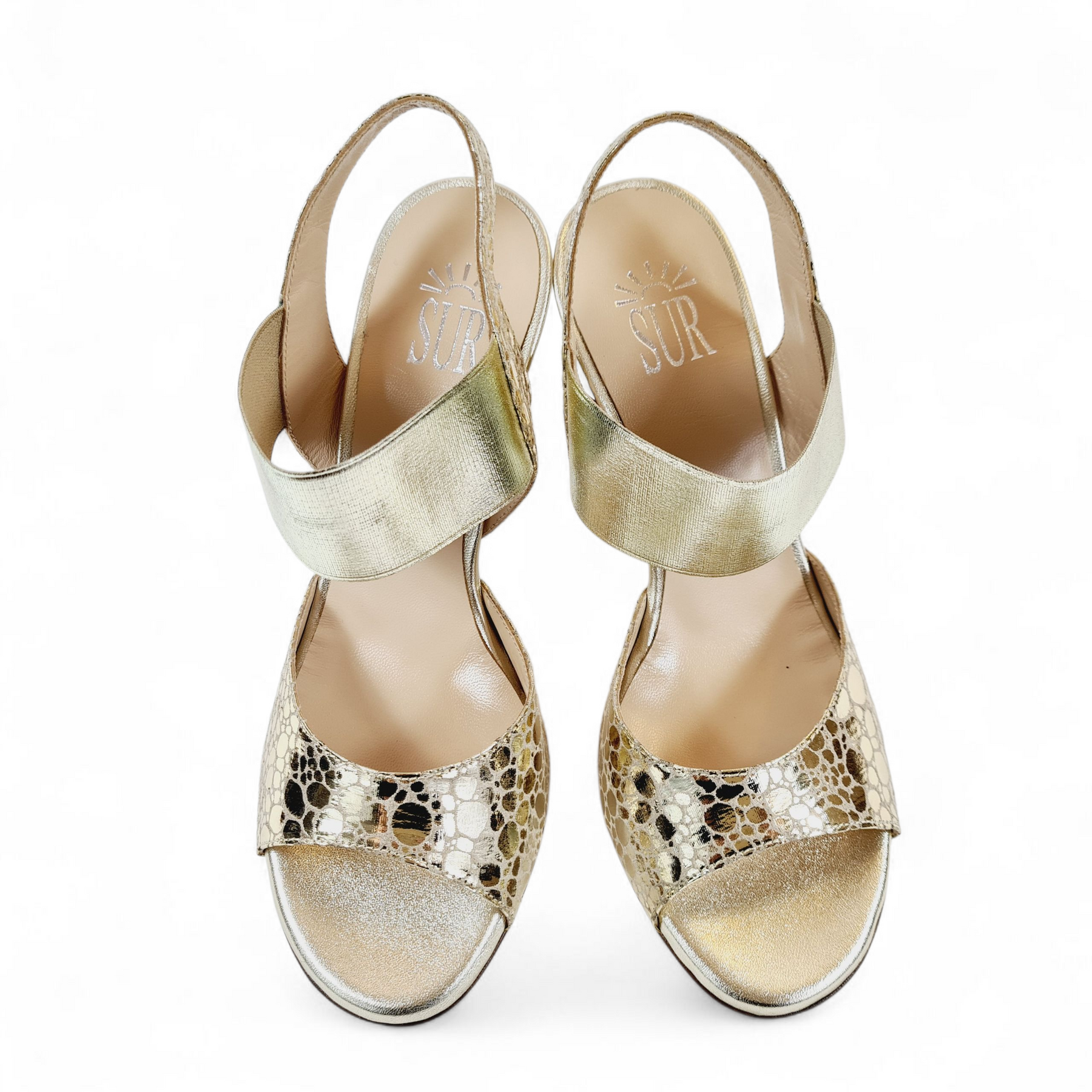 MALAGUENA Tessuto Bubbles Platino  tacco 8