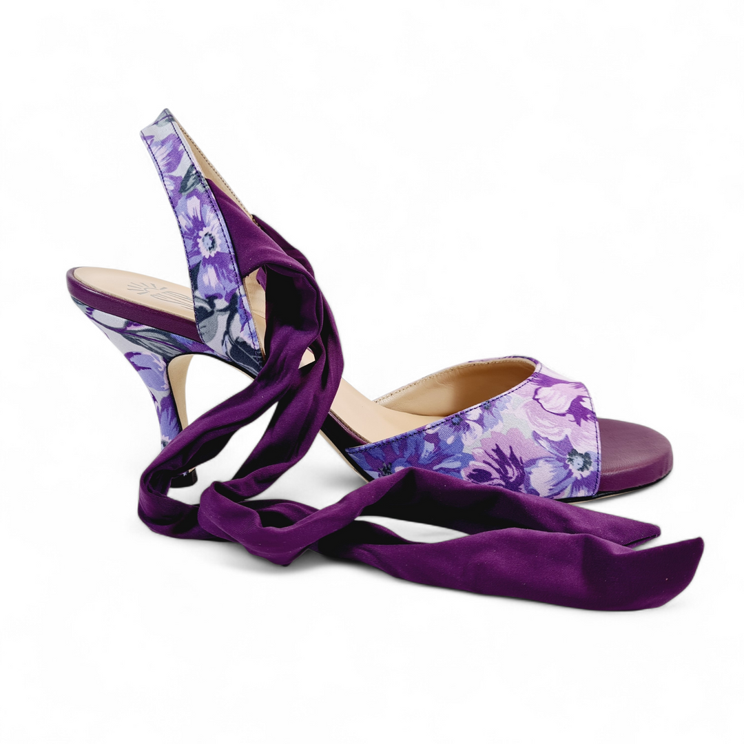 PALOMA Raso Fiori Viola tacco 7