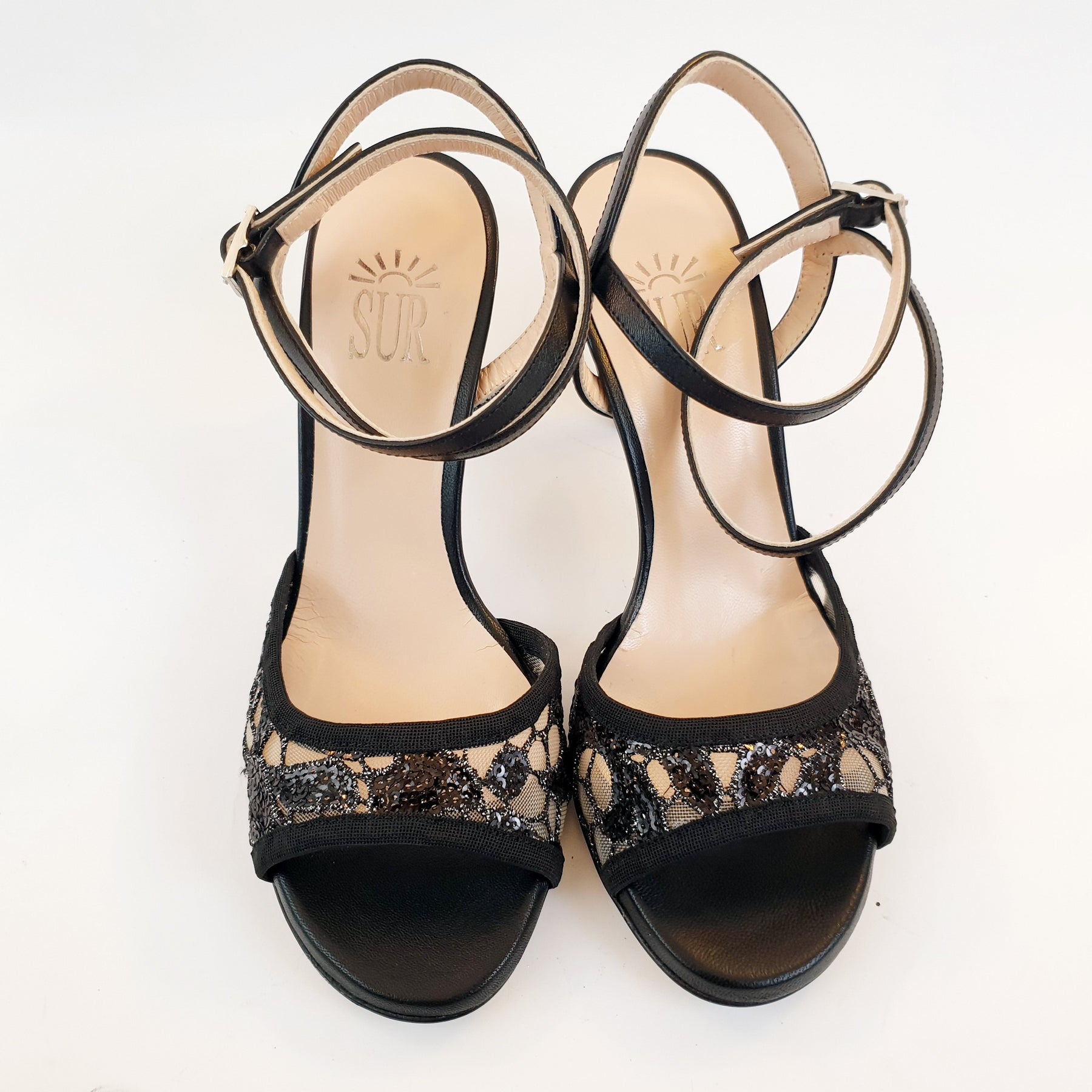FEMME Rete Paillettes Ricamo Nero tacco 8
